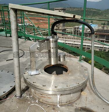 工作时,探头不穿过炉墙,一般探入炉墙的深度不超过100mm,通过墙体上由外墙向炉内开喇叭口观察高温窑炉内部状况。